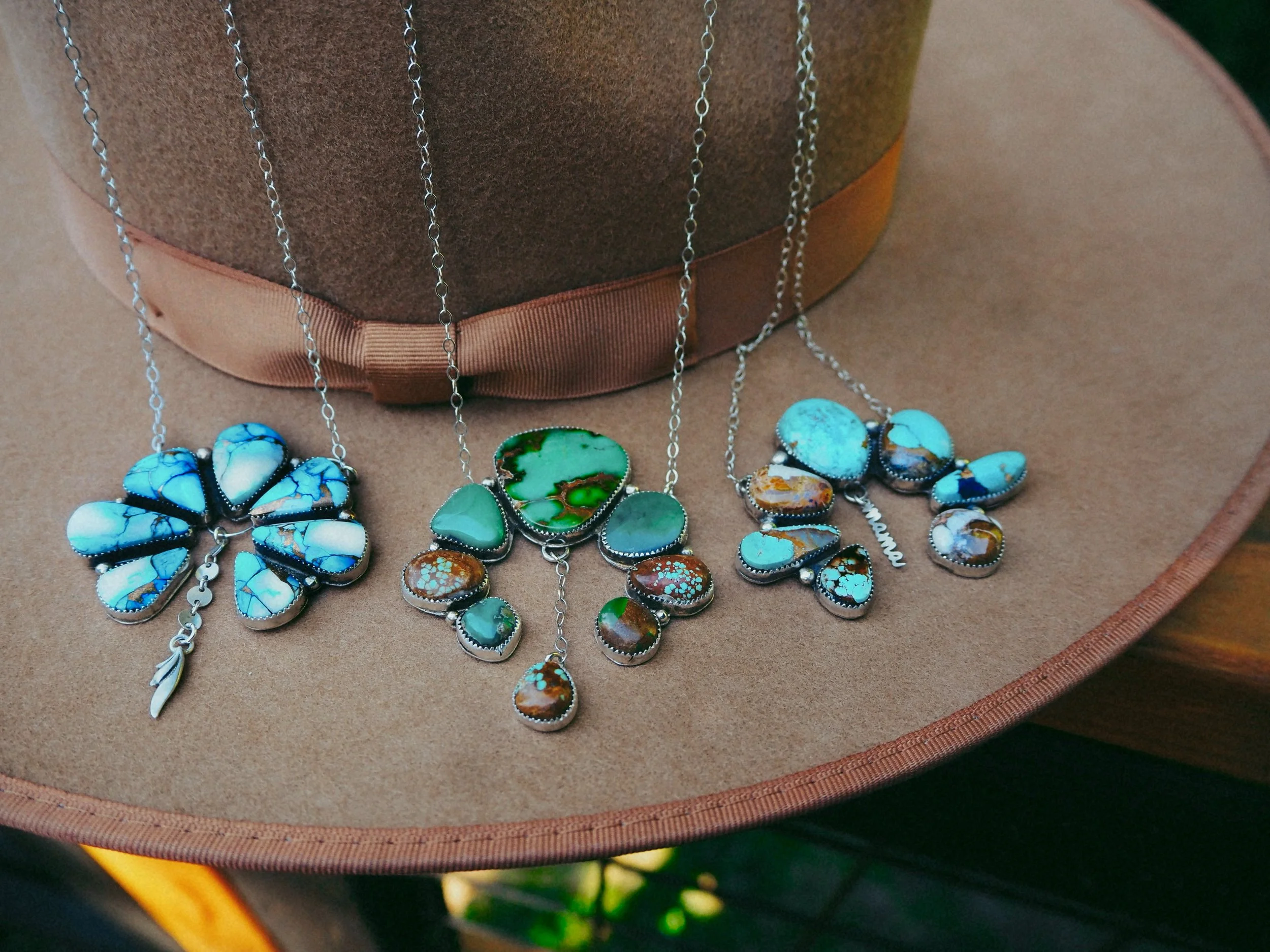 Categories: All Accessories Cuffs earrings necklaces rings Ready To Ship SALE All | Accessories | Cuffs | earrings | necklaces | rings | Ready To Ship | SALE | Luna Blues Hat Pin $305.00 Tyrone Turquoise Hat Pin $243.00 Reserved Listing For Liz $190.00 Sold out Custom Turquoise Hat Pin $230.00 Custom Thick Hoops Earrings $230.00 Custom White Buffalo Hoops $190.00 Custom Crescent Moon Earrings $200.00 Custom Hair Pin $160.00 Custom Naja Ring $320.00 Custom Dog/Pet Tags $85.00 Custom Double Stone Turquoise Cuff $250.00 Custom Bandana Slide $160.00 Custom Wild Flower Ring from $285.00 Custom Wild Flower Cuff $350.00 Custom Naja Lariat Necklace $385.00 Custom 2/3 Stone Ring from $275.00 Custom Droplet Earrings $620.00 Custom Ear Climber from $230.00 Custom Wild Flower Choker from $400.00 Custom Number 8 Turquoise Hoops $190.00