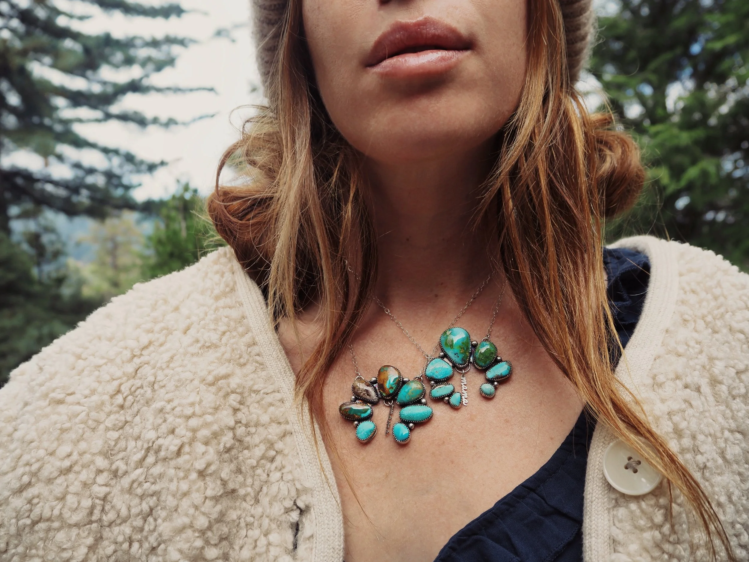 Custom Naja Lariat Necklace - This piece is made up of 8 different natural turquoise stones of your choice, we will create and pick out stones together . I have made a naja pattern with a dainty dangly turquoise stone hanging below, in a lariat design, on a sterling silver delicate thicker chain. These Stones are one of a kind, natural and vary in color and shape. I have stamped the back, patina, and polished your piece. Wear beautifully as a statement piece!